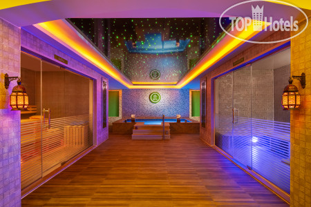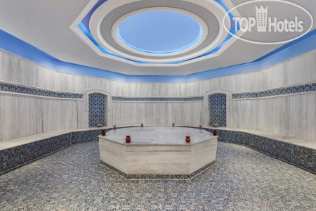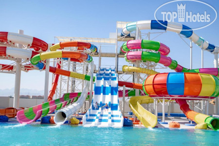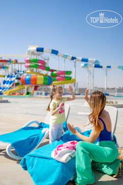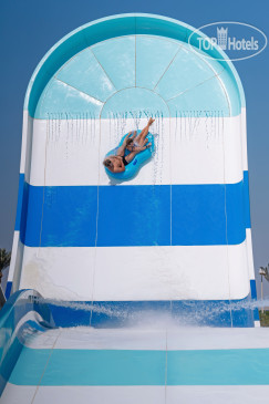 Аквапарк новый, есть много шезлонгов, раздевалки, душевые, зона бара, угощают обедом. Аквапарк безопасный, но мне показался скучным. Примерно такой же как в Риксос Премиум Сигейт.