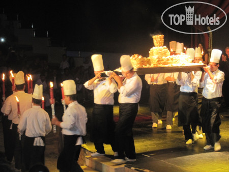 В путевку было включено два из трех или четырех ресторана, которые предлагают широкий выбор блюд местной и международной кухни. Особенно стоит отметить разнообразие шведского стола, где каждый сможет найти что-то по своему вкусу. Очень большая территория для приема пищи, сама еда была очень вкусной. Так же есть детская столовая, куда мы ходили с сыном, чтобы он покушал. Меню было не маленькое, но многие дети "сидят" на картошке фри весь отдых, так же там в неограниченном количестве был детский сок и фруктовое пюре.