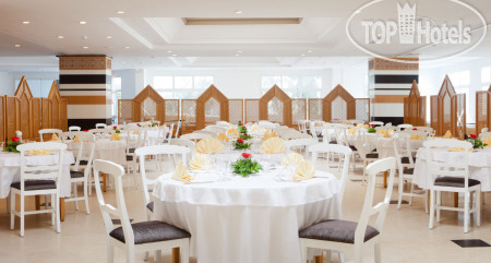 Ресторан - еда просто супер - не было ничего острого, все в меру. Завтраки как и везде - джемы, выпечка, омлет, яйца вкрутую, овощи свежие, тушеные... Все не перечислить. Платно есть свежевыжатые соки - апельсин всегда, из клубники - 1 день не было только. Стакан - 5 динар. Обед - говядина в разных вариациях, печень, курица/индейка. Пицца. Гамбургеры) Разные гарниры, овощи. Много пирожных. Арбузы были каждый день. Очень вкусные дыни. Нектарины, персики, абрикосы. Клубника была 1 день.