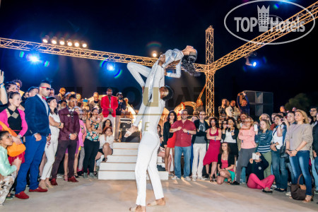 В период моего отдыха в отеле было 90% гостей алжирцев и тунисцев, остальные европейцы. Как я поняла, отель принимает студентов, которым государство выделяет деньги на отдых в определенных отелях (как-то так). Видимо поэтому было очень много местных молодых людей и было такое чувство, что они еду видели первый раз в жизни. В ресторане были жуткие очереди и шум. Горячее, сладости и фрукты они разбирали за считанные минуты, персонал не успевал заносить новые блюда. Только в первые минуты с открытия ресторана можно было взять еду, дальше либо кончалась еда, либо чистые тарелки и приборы. Первые четыре дня всех кормили в общем ресторане. На пятый день для нас, европейцев, выделили отдельную зону в ресторане, с едой и напитками. В этом плане отелю плюс, на завтрак, обед и ужин, мы с ними больше не пересекались, в нашем ресторане было все спокойно.