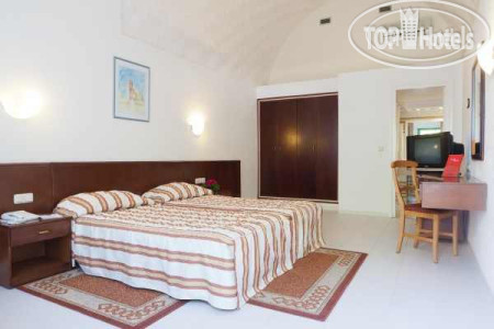 Номер в основном корпусе, дали 2 этаже на 4,5 человека - было 2 большие отдельные кровати, 2 небольшие (как для подростков), и небольшой диванчик, застеленный также постельным бельем. Мебель не новая, но, ничего ломанного или сильно обшарпанного не было. Вид на бассейны - вечером как раз там была анимация, но, нам ее шум не мешал.